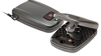 The SnapSafe® Lock Box provides secure storage for handguns and other valuables at home, on a nightstand, in the car, or when traveling. All SnapSafe Lock Boxes come with a heavy duty 1500 lb. rated steel cable that secures to any stationary object including a vehicle seat or heavy piece of furniture. The patented, space-saving receiver of the cable allows maximum storage space inside the box. The Lock Box also provides security for concealed carry permit holders.