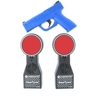 The pistol builds confidence with trigger control, sight pictures, drawing and re-holstering from traditional and concealed carry holsters. This interactive target system provides visual and audible notification to alert shooters when they made an accurate hit shot on target with the integrated laser.